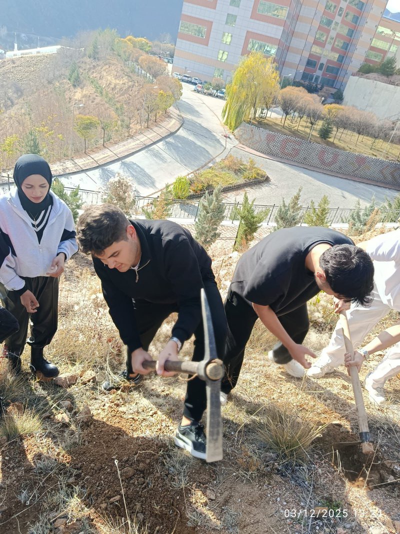 Gümüşhane Üniversitesi Sosyal Bilimler Meslek Yüksekokulu, öğrencilerine akademik yetkinlik kazandırmanın yanı sıra sosyal sorumluluk bilinci aşılamaya yönelik faaliyetlerine devam ediyor. Bu kapsamda, Yönetim ve Organizasyon Bölümü, Sağlık Kurumları İşletmeciliği Programı öğrencileri, doğa sevgisini pekiştirmek ve kampüs estetiğine katkı sağlamak amacıyla anlamlı bir etkinliğe imza attı.
